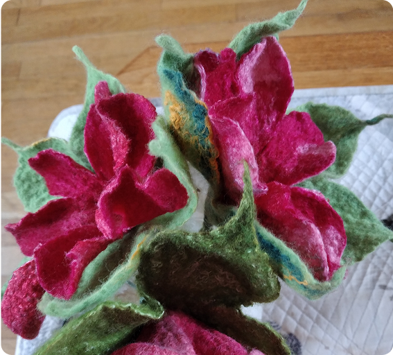 In mijn workshops ontdek je hoe wol, vezels en planten zich laten vormen tot iets eigens. Stap voor stap leer je de technieken van vilten en botanisch printen, maar ook de ruimte te nemen om te spelen en je eigen stijl te vinden.
